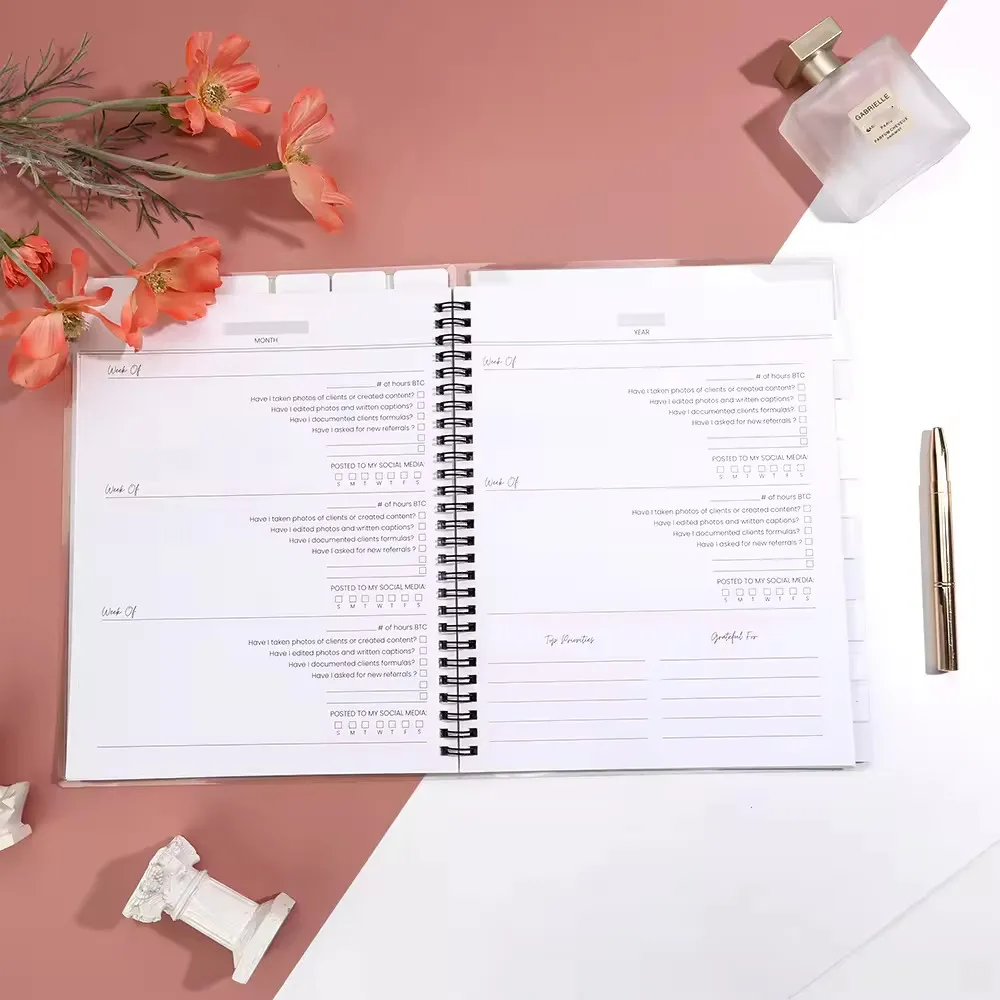 Vi introduserer Coil Binding og Colorful Cover Planner fra Cangnan South Print Co., en perfekt blanding av stil og funksjonalitet for alle dine planleggingsbehov. Denne planleggeren har et livlig, iøynefallende deksel som gir et snev av personlighet til din daglige rutine. Spolebindingen sikrer at planleggeren ligger flatt, og gir en jevn og behagelig skriveopplevelse.